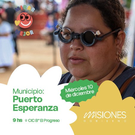 Este miércoles 10 de diciembre, desde las 9 horas, el programa provincial “Mirar Mejor” llevará a cabo su operativo N° 60 en el CIC del Barrio El Progreso, Puerto Esperanza. Durante la jornada se brindará atención oftalmológica integral a los vecinos de la zona. La iniciativa se realiza mediante la articulación entre el Gobierno de Misiones, el Instituto Provincial de Lotería y Casinos (IPLyC), la Sociedad de Oftalmología de Misiones (SOMI) y la Municipalidad de Puerto Esperanza.